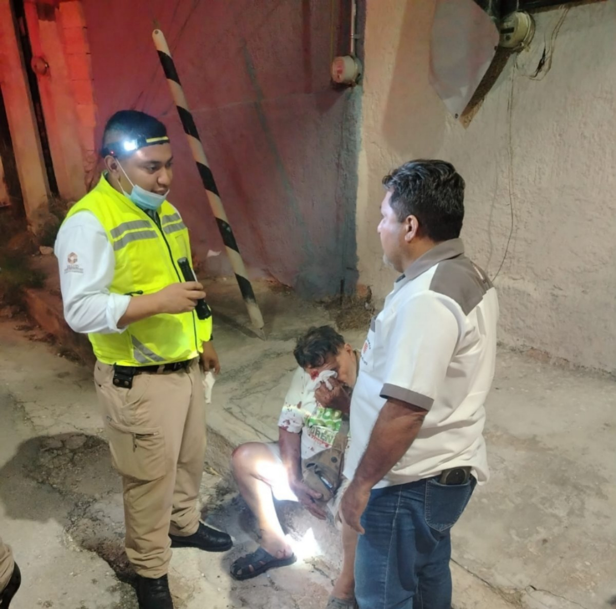 Un hombre mayor fue localizado en medio de la vía pública con heridas sangrantes, luego de caer de una escalera mientras realizaba trabajos de plomería en un predio ubicado en la Ampliación Esperanza. Tras ser valorado por los paramédicos, un familiar se lo llevó al hospital a bordo de un taxi.