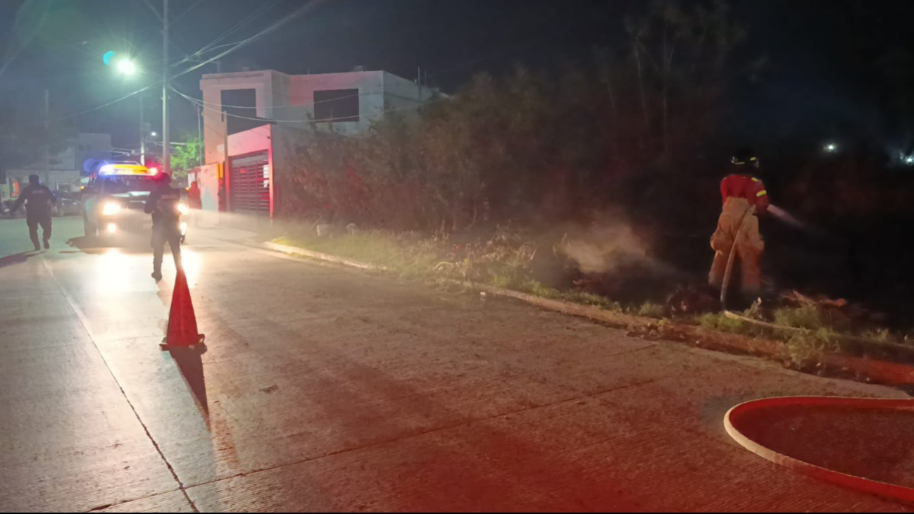 El hecho ocurrió cuando un grupo de pirómanos ingresó al predio situado sobre la avenida Edzna de la colonia Plan Chac, quienes iniciaron el fuego e inmediatamente huyeron.