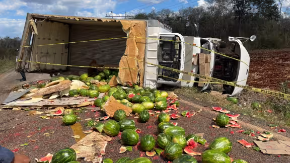 Un conductor de camión cargado con sandía perdió la vida tras volcar su unidad en el kilómetro 76 del tramo Hopelchén-Ich-Ek, sobre la carretera federal 261 Hopelchén-Campeche. El accidente ocurrió alrededor de las 13 horas y dejó además a un acompañante lesionado.