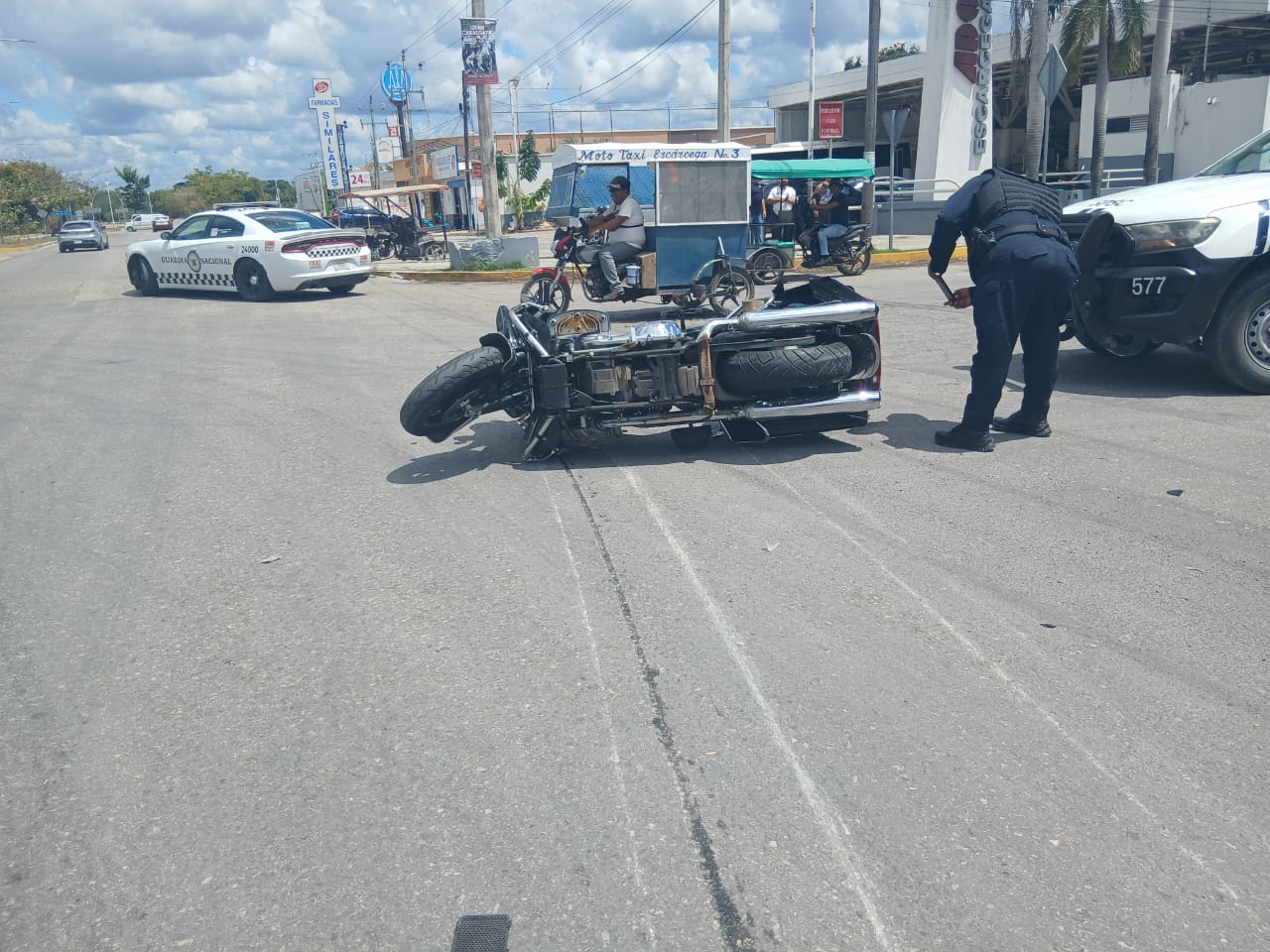El percance se registró alrededor de las 12:40 horas, cuando la motocicleta circulaba sobre la avenida Solidaridad con dirección al monumento a La Mujer Campechana. Al llegar al cruce de la glorieta, el conductor no realizó su alto obligatorio, impactándose contra el automóvil que transitaba con preferencia.