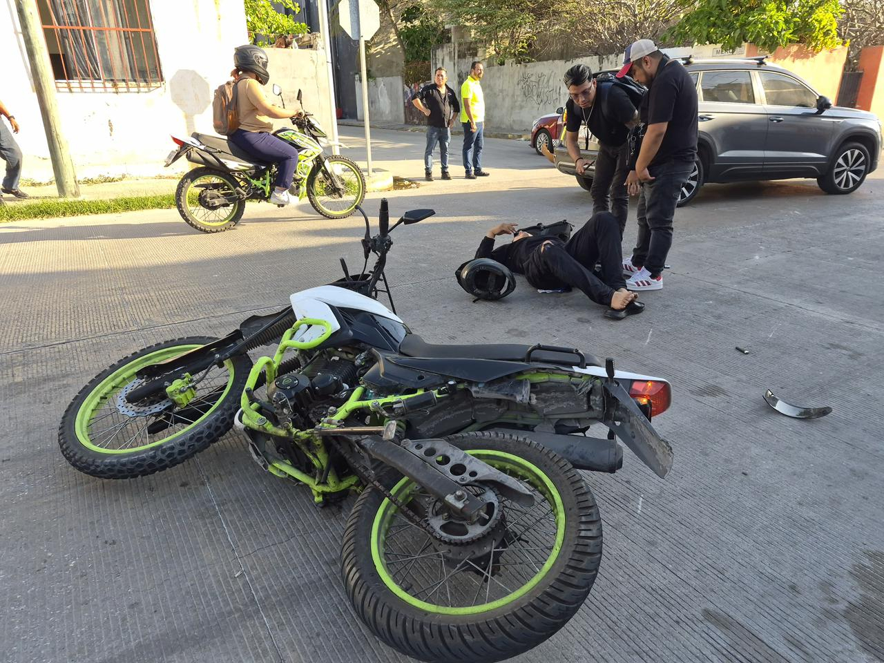 Un joven motociclista resultó lesionado con fractura en la clavícula luego de verse involucrado en un accidente de tránsito registrado en las inmediaciones de la colonia Justo Sierra, lo que generó la movilización de cuerpos de emergencia y autoridades viales.