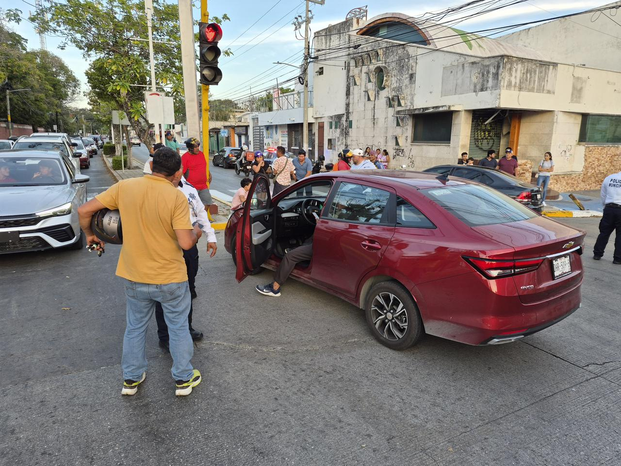 Se pasa el semáforo y choca contra motocicleta en Ciudad del Carmen; dos jóvenes heridos