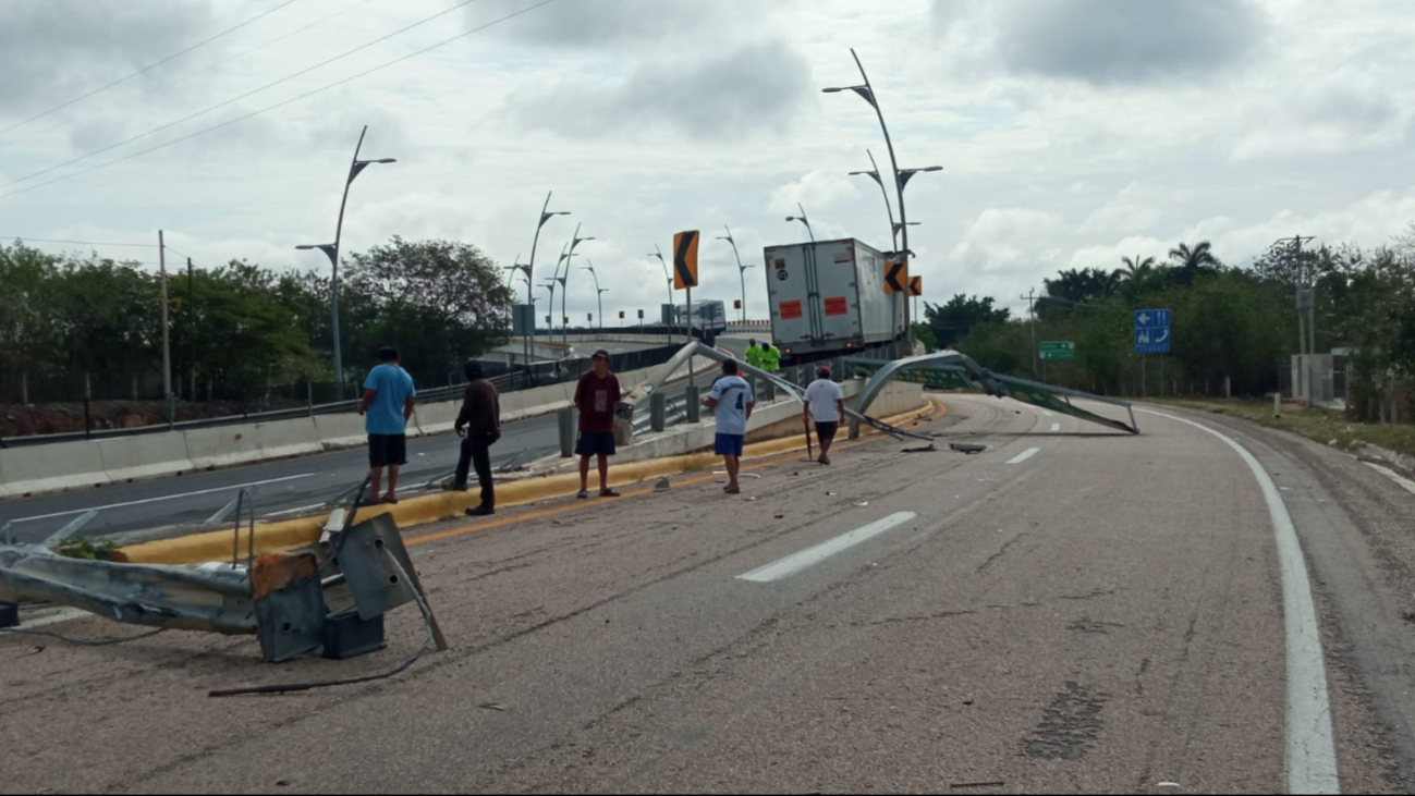 Trailer se impacta en muro de contención en Tenabo y paraliza la carretera Campeche-Mérida