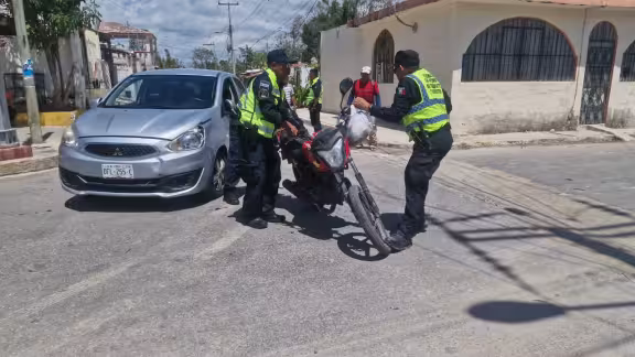 A pesar del aparatoso choque, el motociclista resultó ileso, por lo que no fue necesario su traslado a un hospital. El incidente dejó únicamente daños materiales en los vehículos involucrados.