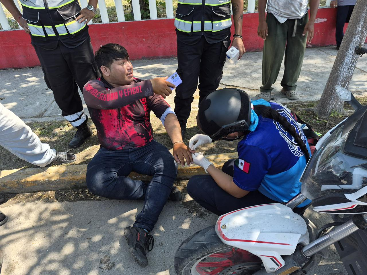 El lesionado fue identificado como Obed, quien circulaba en una motocicleta Vento, con placa 06GTY3 del estado de Campeche, con dirección hacia la avenida 56.