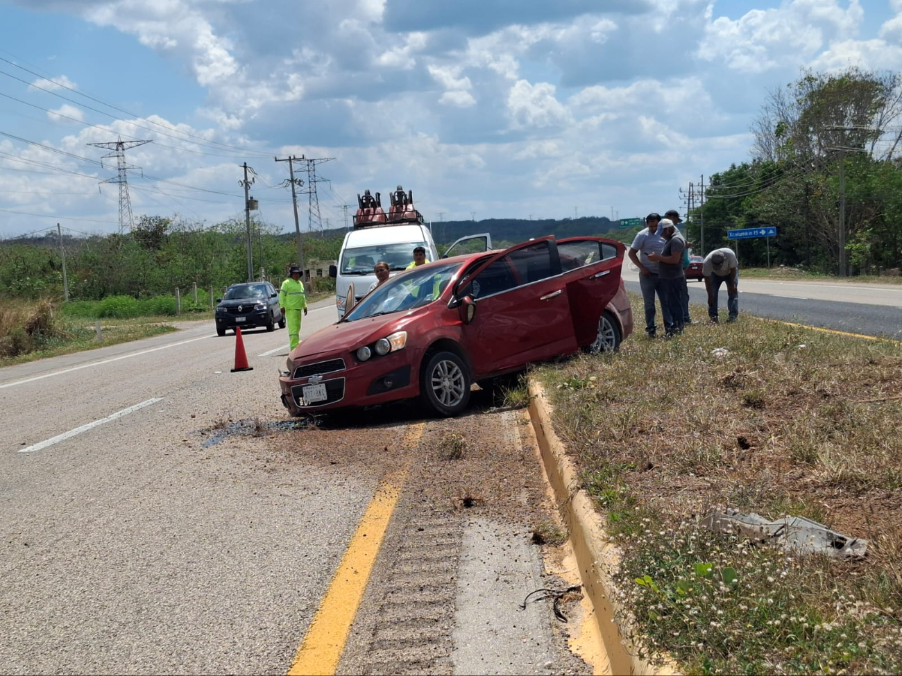 Los trabajadores de Enlace Comercial presenciaron el accidente, observaron cómo el carro volcó y cruzó la vía central de la carretera, quedando en el carril izquierdo que conduce a Mérida, Yucatán. Al sitio arribó Protección Civil, quienes desconectaron la batería para evitar un corto circuito y un posible incendio.