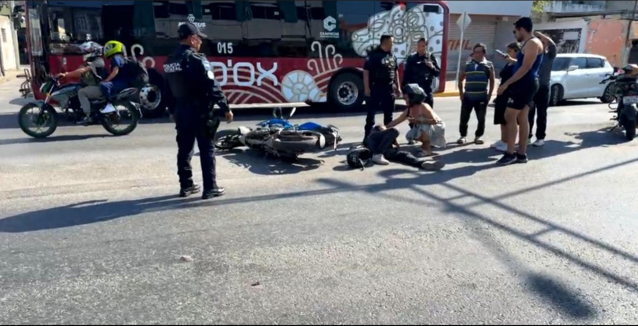Pareja derrapa tras choque con camioneta en Campeche