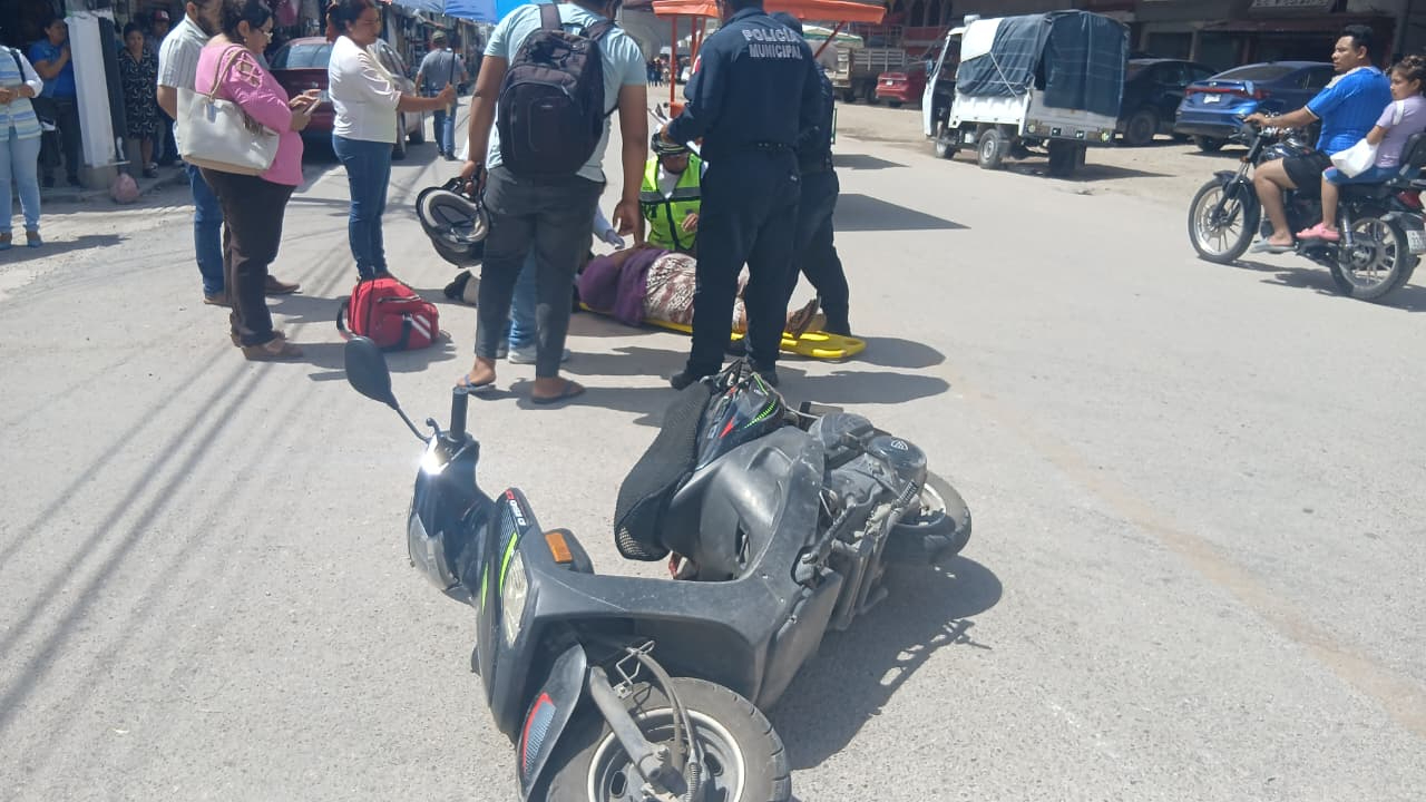 Al llegar al cruce de la calle 28 de la colonia Centro, la motociclista intentó rebasar del lado izquierdo, pero al parecer el mototaxista no se percató y logró golpearla, lo que ocasionó que derrapara y resultara con golpes en el cuerpo, donde comenzó a quejarse de fuertes dolores.