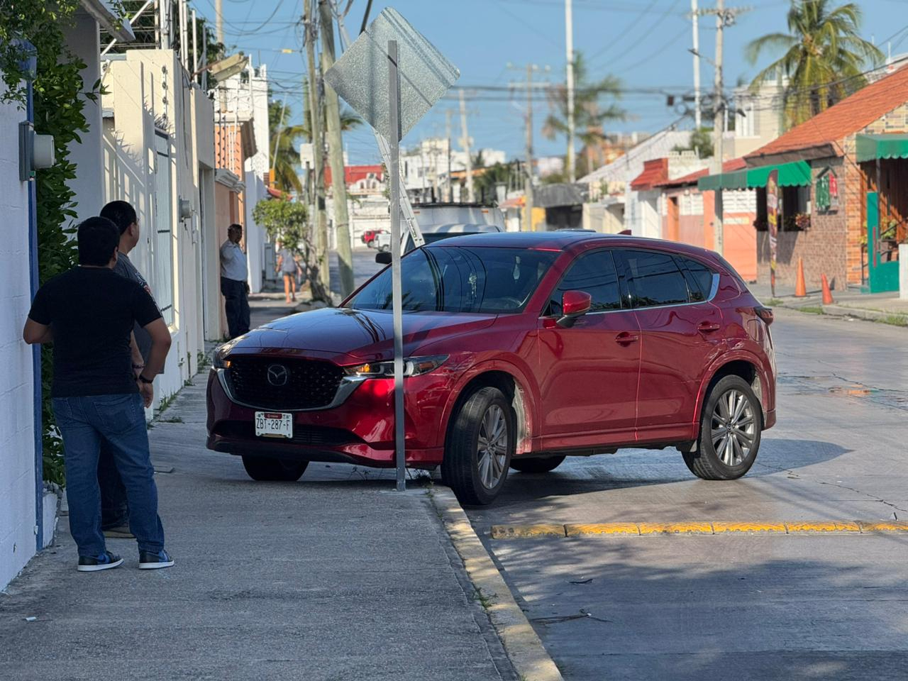 Tras el impacto, el conductor de la unidad Mazda perdió el control del vehículo, lo que provocó que volanteara y subiera a la banqueta, donde se estrelló de frente contra una señalética de tránsito, ocasionando daños adicionales tanto en la unidad como en la infraestructura urbana.