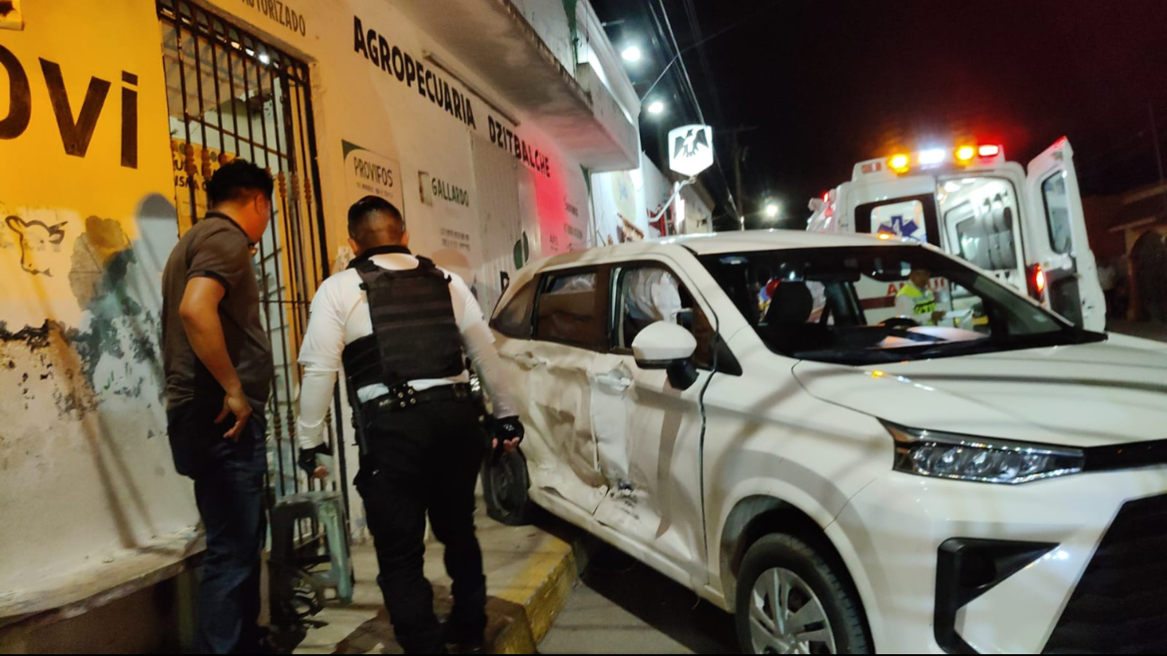 Se salvan de milagro: Taxi sale disparado tras choque y casi atropella a tres en Dzitbalché