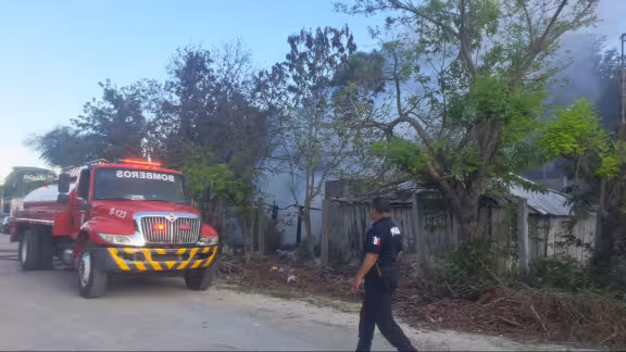 Un incendio consumió una vivienda en Escárcega, dejando a una familia sin hogar. El fuego habría iniciado por brasas encendidas en un fogón; no hubo lesionados.