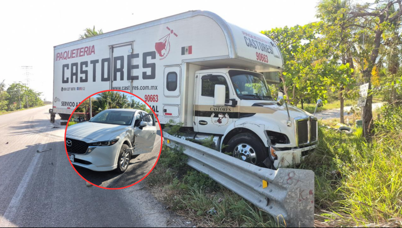 Sin embargo, al momento de realizar la maniobra, la unidad fue impactada de costado por un camión de carga de la empresa Castores, marca Kenworth, con placas del servicio de autotransporte federal. Tras el fuerte choque, la pesada unidad salió de la carpeta asfáltica y terminó entre la maleza a un costado de la vía, mientras que la camioneta particular quedó atravesada en sentido contrario sobre la carretera.
