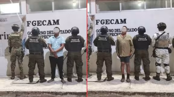 La FGECAM detuvo a dos hombres durante cateos en Nuevo Progreso, Carmen, donde aseguró drogas, dinero en efectivo y una motocicleta por presuntos delitos contra la salud.