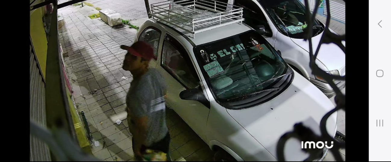 Un hombre que vestía short, camiseta y chancletas fue videograbado por cámaras de comercio cercano en el momento que se apoderaba de una batería de una camioneta que se encontraba estacionada sobre la calle 22 entre 27 y 29 de la colonia Centro, y también ha cometido otras fechorías en la misma zona.