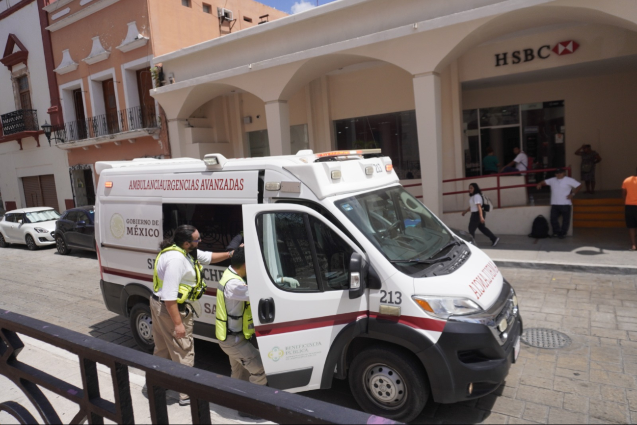 Paramédicos del Sector Salud asistieron a una persona dentro de un banco en la zona Centro, luego de caer desplomada ante la mirada de ciudadanos, quienes al ver que no reaccionaba pensaron que había fallecido; sin embargo, esto fue descartado por las autoridades.