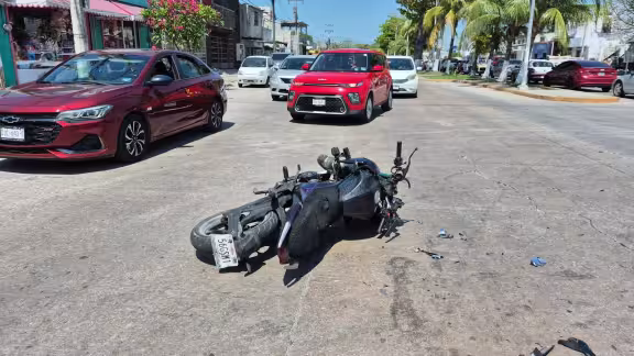 Ante esta maniobra, el motociclista no logró frenar a tiempo, impactándose contra el costado izquierdo del vehículo, lo que provocó que saliera proyectado por los aires. A pesar de lo aparatoso del percance, el joven resultó ileso, mientras que su unidad quedó tendida sobre el pavimento con severos daños.