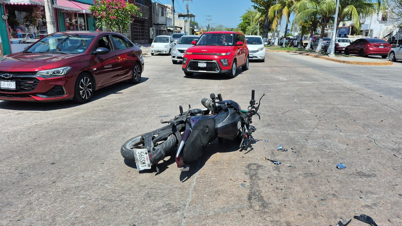 accidente en Ciudad del Carmen: Motociclista impacta contra automóvil en Puerto de Progreso