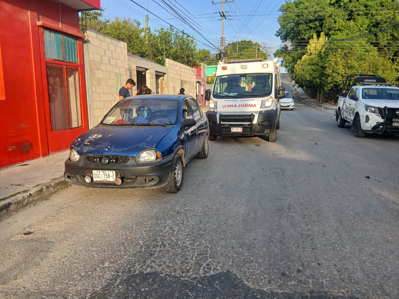Un joven estudiante en estado de ebriedad chocó su motocicleta Italika blanca contra un Chevy azul en la colonia Unidad Esfuerzo y Trabajo 2 de Mérida