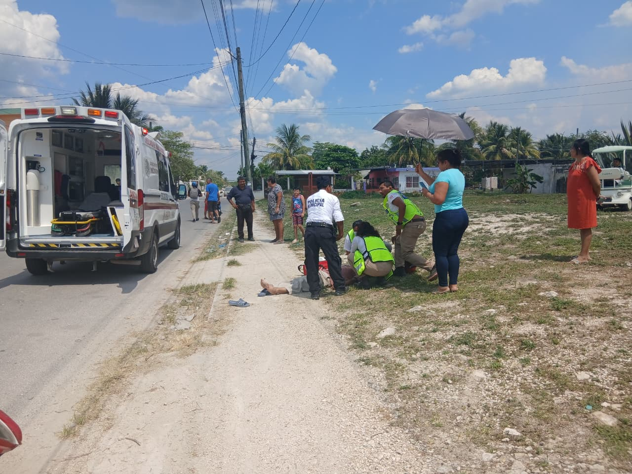 Según datos recabados, los hechos se suscitaron a las 13:30 horas, cuando circulaba sobre la calle 26 de la colonia Fátima una motocicleta Italika conducida por Orlando Hernández Vázquez en aparente estado de ebriedad, quien se dedica a la venta de jugos embotellados, cuando en determinado momento perdió el control del manubrio y derrapó sobre el pavimento.