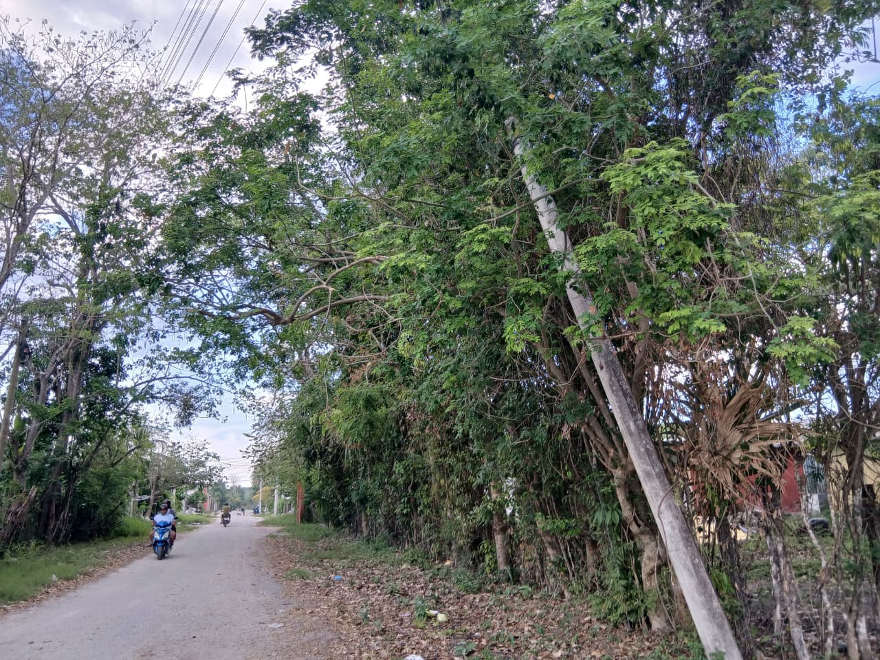 Vecinos de Escárcega alertan por un poste de la CFE ladeado que podría caer y causar accidentes. También denuncian riesgo de corto circuito por cables entre ramas.