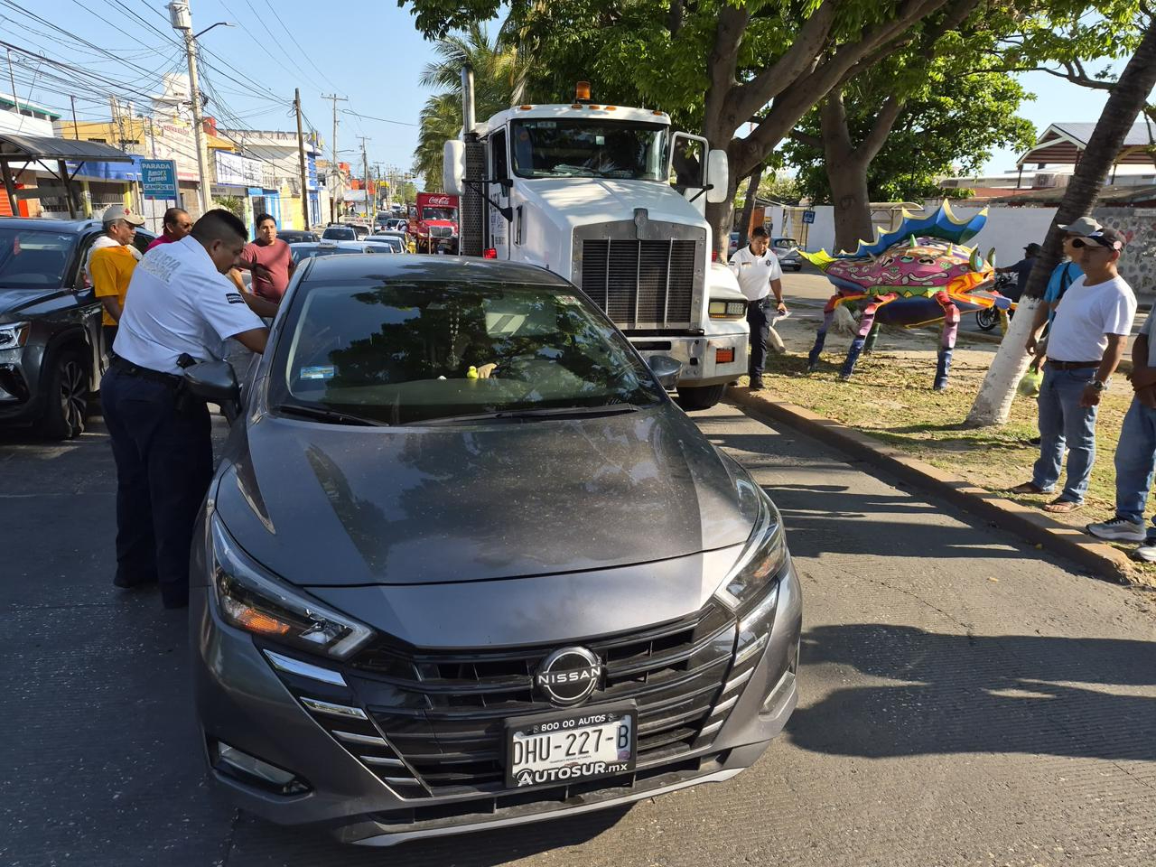 Sin embargo, la maniobra no se concretó de forma segura, lo que derivó en un impacto lateral entre ambas unidades. Como resultado, el vehículo compacto presentó daños en la fascia y pintura, mientras que la pesada unidad registró afectaciones menores.