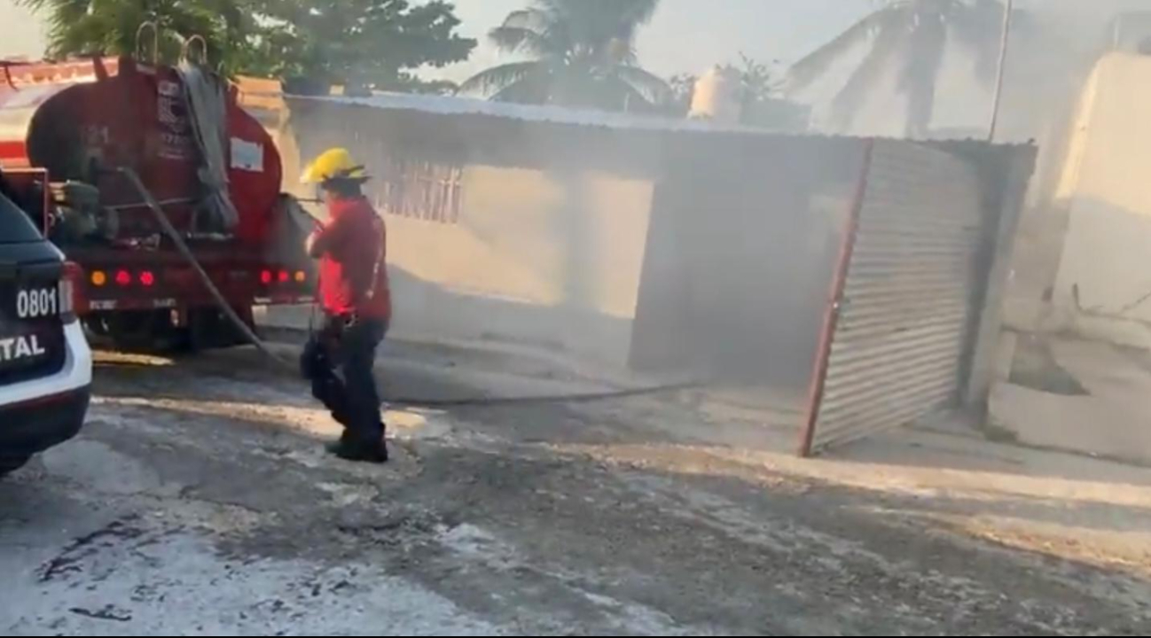 Un incendio en el patio de una vivienda en Ciudad del Carmen movilizó a bomberos y Protección Civil. No hubo heridos, pero sí daños materiales en el predio y casa contigua.