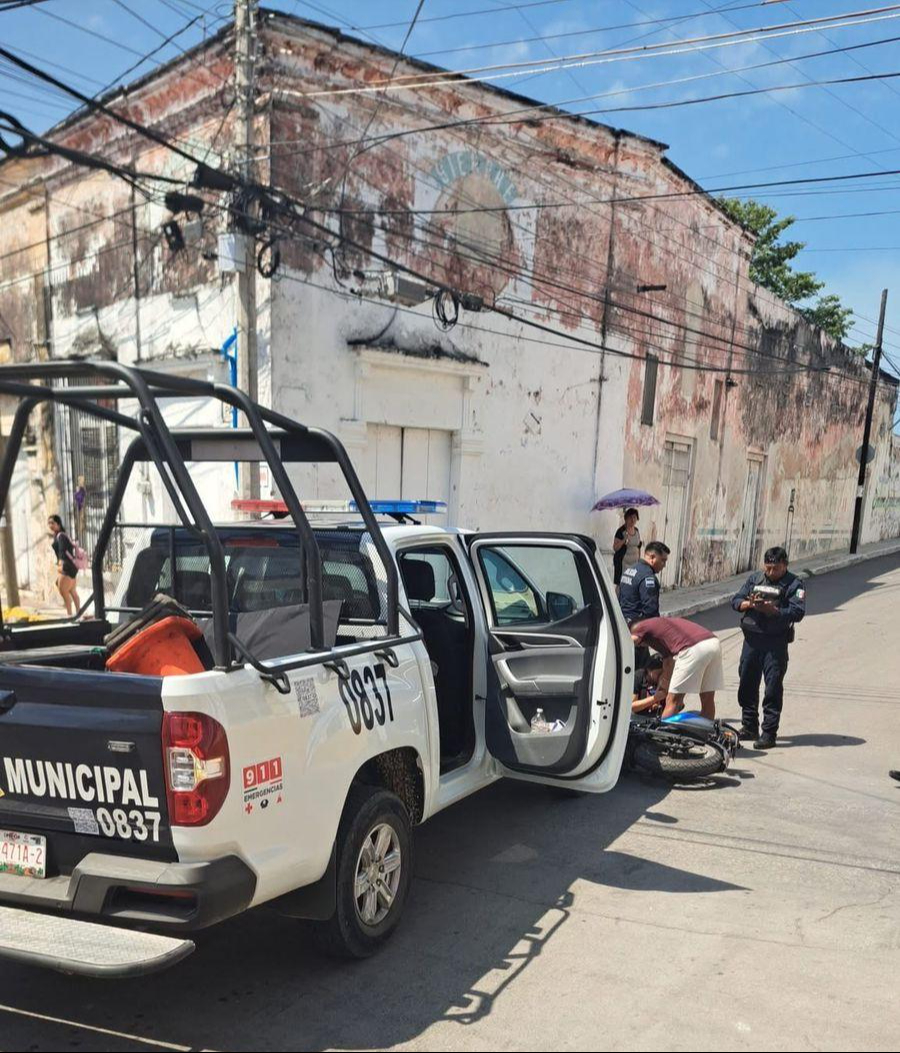 Una pareja a bordo de una motocicleta fue colisionada en el Centro de Champotón por una unidad de la Policía Municipal 0837 de Calakmul.
