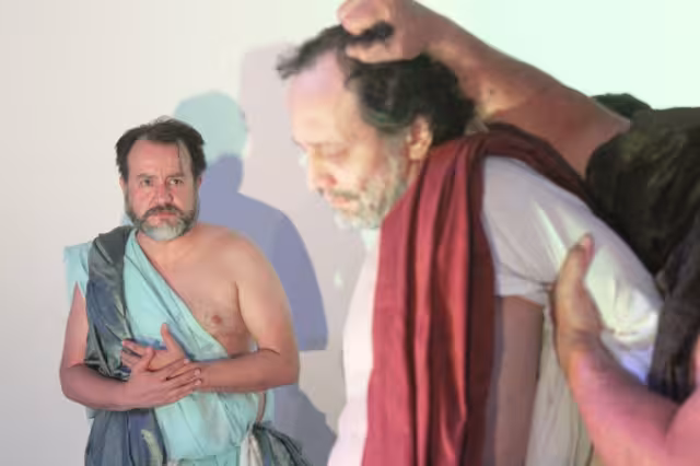 En el camino, Rebeca empezó a integrar sus poemas. “No queríamos que fuera un relato que permaneciera en el pasado, sino traer al presente qué significa tener una relación con Jesucristo, quién es él hoy en día y qué representa ser un discípulo en la actualidad. ¿Qué significa tener fe? Eso puede dar aliento a una vida y transformarla completamente”.  En ese plano contemporáneo, “los discípulos son personajes cotidianos. De repente, se cruzan con Jesús, y van a ser transformados por el Mesías. Lo contemporáneo viene de los poemas y las acciones performativas, basadas en la representación de la sangre del sacrificio de Jesús, y, en lo propio de esa época, están los cuadros vivientes y el verso clásico de Alonso del Campo”, explica Ruiz.