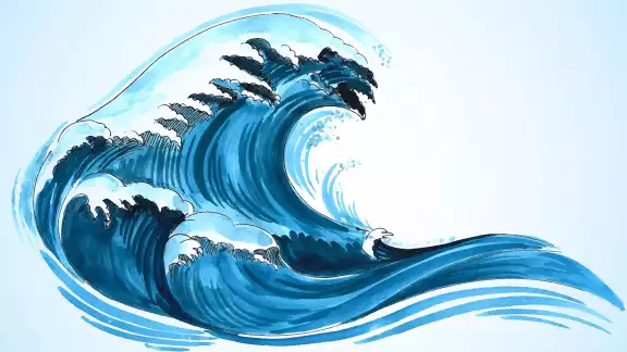 BESTIA y AMAREA se besan. La ola avanza hasta ellos. Apocalipsis.