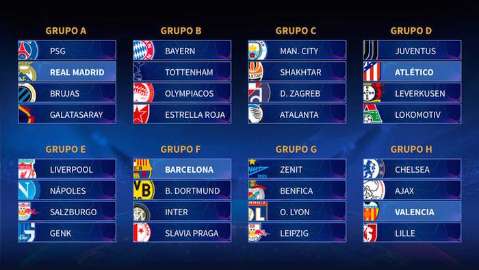 En el resto de grupos, el Bayern estará en el B junto a Tottenham, Olympiacos y Estrella Roja; Guardiola salió bien parado en el C, ya que se medirá a Shakhtar, Dinamo Zagreb y Atalanta; en el E, Liverpool y Nápoles no deberían tener problemas ante Salzburgo y Genk. Y el grupo más flojo, sin duda, será el D, en el que estarán Zenit, Benfica, Lyon y RB Leipzig.