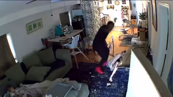 En el video se puede observar el momento en que empieza a golpearla en la cabeza hasta derribarla en frente de una mesa. Luego la levantó y la tiró contra la televisión, la cual terminó cayendo encima de ella. Fue en ese momento cuando empezó a escucharse el llanto del pequeño: “Escucha”, atinó a decir Evans mientras intentaba recomponerse de la golpiza.