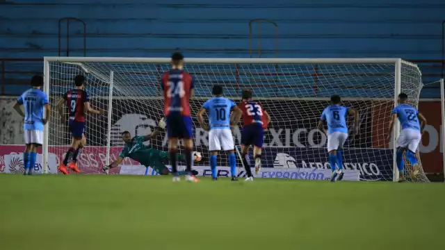 Los Azulgranas propiciaron un penal al 33’, que el colegiado no la pensó dos veces en marcar. Vladimir Moragrega la ejecutó desde los once pasos con un disparo por el centro que estrelló en la rodilla del portero Guillermo Allison quien se lanzó por derecha. En el rebote, Luis García trató de fusilar al arquero pero su disparo pasó encima de la portería, perdiendo la posibilidad de anotar.