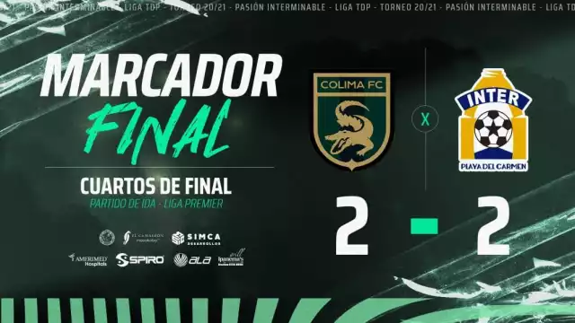 En un partidazo, digno de liguilla, el Inter Playa del Carmen empató 2-2 ante Colima FC, en el estadio "Olímpico Universitario" en el partido de Ida de Cuartos de Final de la Temporada 2020-2021 de la Liga Premier.