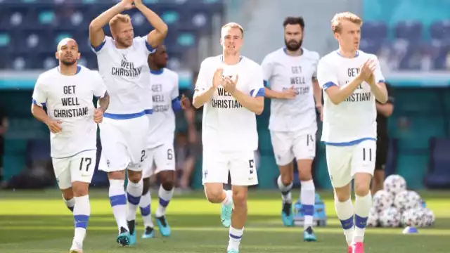 En el partido de este miércoles contra Rusia en San Petersburgo de la Eurocopa, los jugadores de la selección de fútbol de Finlandia realizaron su calentamiento vistiendo una camiseta con un mensaje de apoyo al danés Christian Eriksen, quien sufrió un desvanecimiento el pasado sábado.