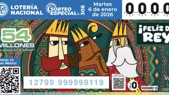 La Lotería Nacional celebró este martes 6 de enero de 2026 su tradicional Sorteo Especial 308 de Día de Reyes, en el que se entregó un premio mayor de 54 millones de pesos, distribuido en cuatro series, lo que incrementó las posibilidades de los participantes.