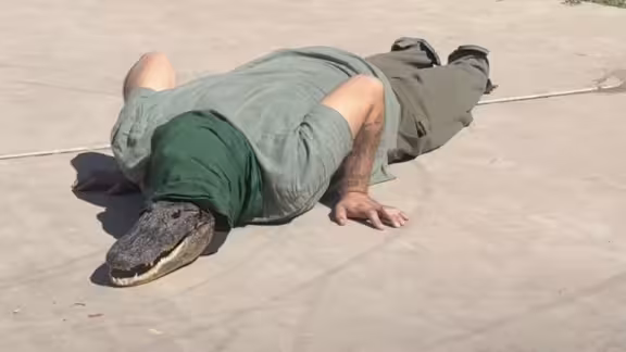 En plataformas como X y TikTok se difundió un video en el que aparece una persona therian en la forma de un cocodrilo. En el clip se puede ver cómo utiliza una cabeza sintética de cocodrilo, lleva una playera en color verde y un pantalón claro, mientras que la cabeza está sujetada con un suéter.