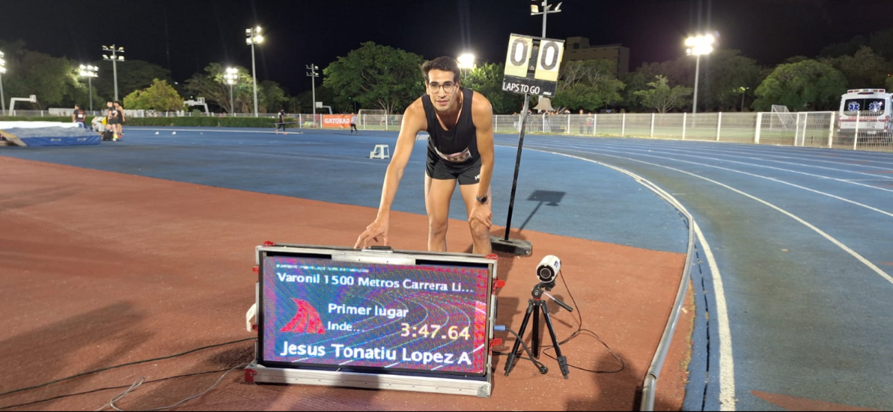 Jesús Tonatiú López rompió récord en mil 500 metros en Yucatán con marca de 3:47.64. Inicia camino hacia Juegos Olímpicos de Los Ángeles 2028.