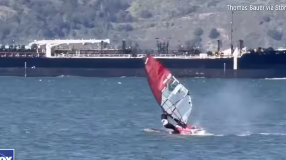 Un windsurfista impactó contra una ballena gris en la Bahía de San Francisco y el momento quedó grabado en video.