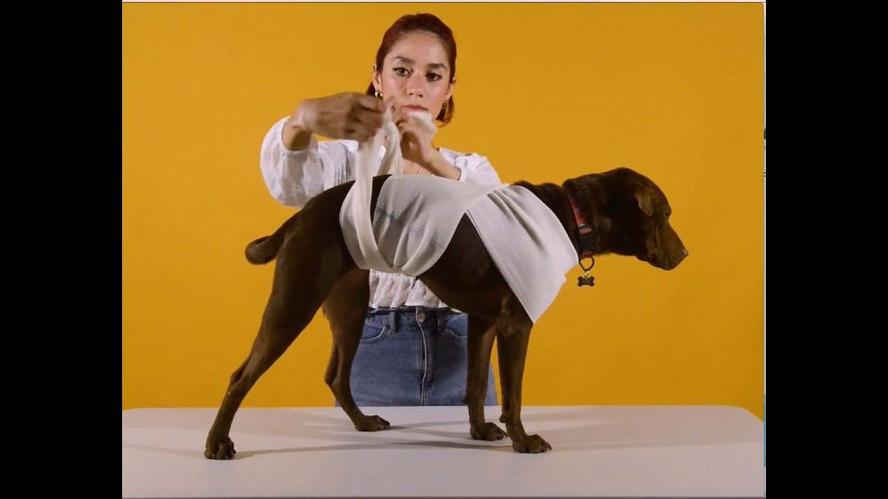 A continuación te explicamos el vendaje básico tipo "medio wrap", uno de los más comunes para estrés y miedo a ruidos. (La colocación puede variar según el objetivo específico.)