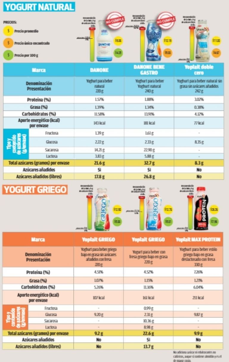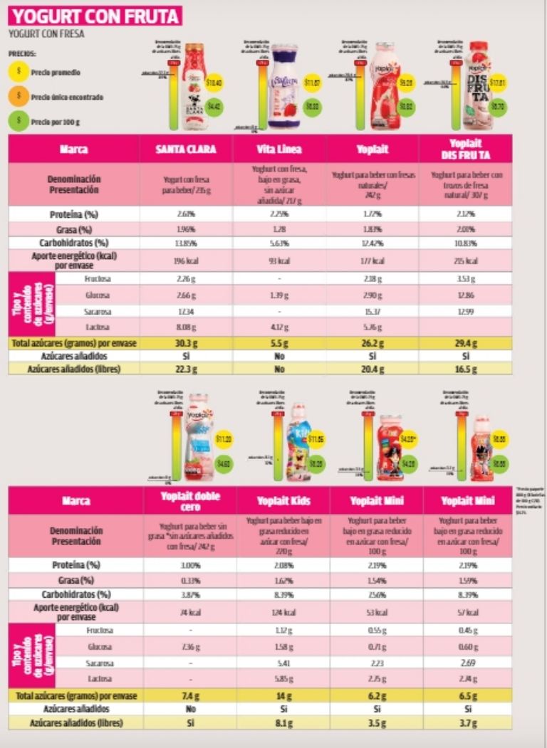 La Revista del Consumidor exhibió varias marcas de yogurt para beber que utilizan más niveles de azúcar y edulcorantes, incluso superiores al que se utilizan en la fabricación de refrescos.