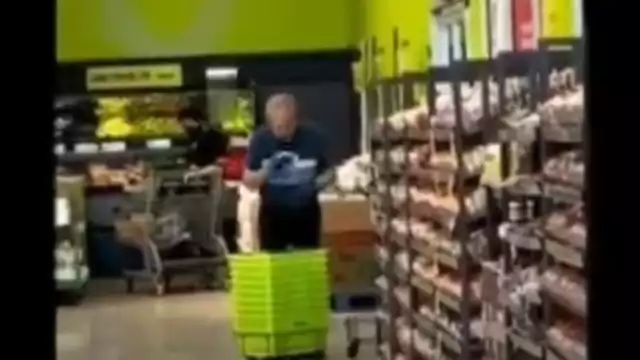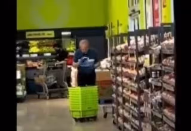A través de un video difundido en redes sociales, una cadena de supermercados pasó la vergûenza de su vida cuando se percató que uno de sus empleados hacia el la limpieza del lugar de manera antihigiénica. En la imagen se aprecia como el hombre de avanzada edad se encuentra trabajando en lo que parece la sección donde se encuentran unos cestos de plástico para llevar pan o fruta.