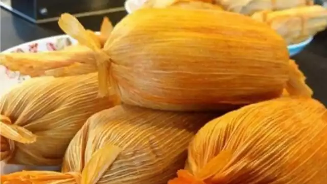 Lo siguiente será extender la hoja de elote, colocar la masa en medio, darle forma ovalada y añadir la carne. Para cerrarlos, debes amarrar cada extremo con la misma hoja.