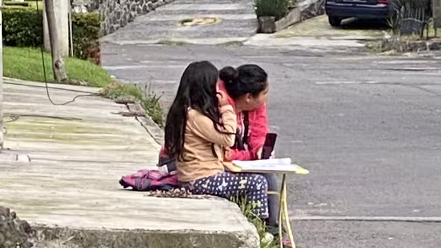 A través de un tuit Bolívar Huerta-Martínez compartió la fotografía en el que una madre y su hija se encuentran tomando clases en línea en una de las aceras de Tlalpan.