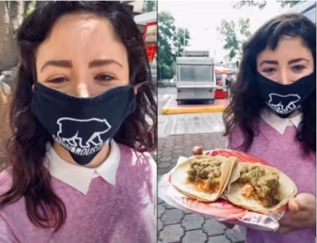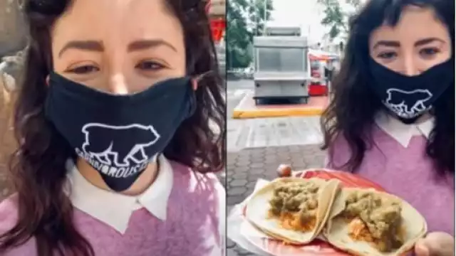 Con cubrebocas puesto, Michelle Castro, mejor conocida como "Lady 3 pesos" pidió dos tacos para comer ahí mismo, y se esforzó por hablar bien del manjar tan defendido por todo México a través de las redes sociales. "En ningún momento fue mi intención degradar u ofender esta comida tan rica que nos da el pueblo de México, la verdad es deliciosa. Mi comentario fue muy tonto" admitió.