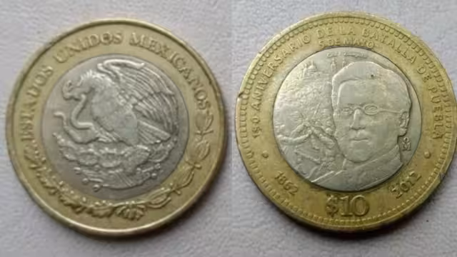 La moneda de 10 pesos que emitió Banxico en 2012 para celebrar la Batalla de Puebla se cotiza hasta en 25 mil pesos en Internet.