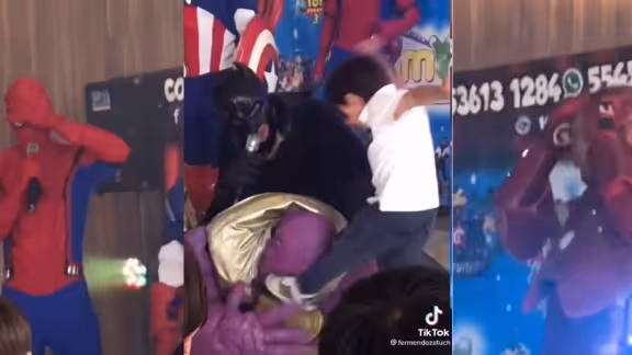 ¡Nuevos Avengers! Niños golpean a Thanos en fiesta infantil: VIDEO