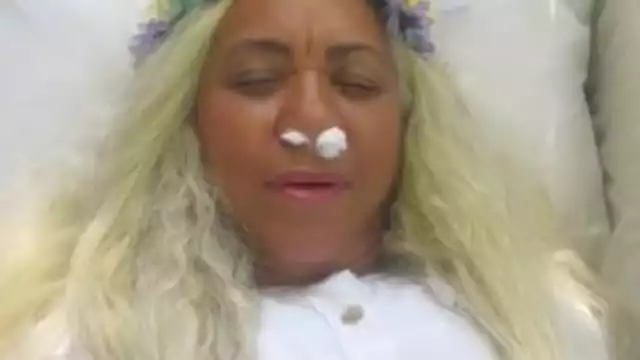 Mayra, una mujer dominicana de 59 años, contrató maquillista, carroza fúnebre y hasta se vistió de blanco para celebrar su propio funeral.