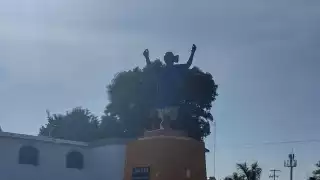 Aficionados celestes le ponen playera del Cruz Azul a monumento de Mérida