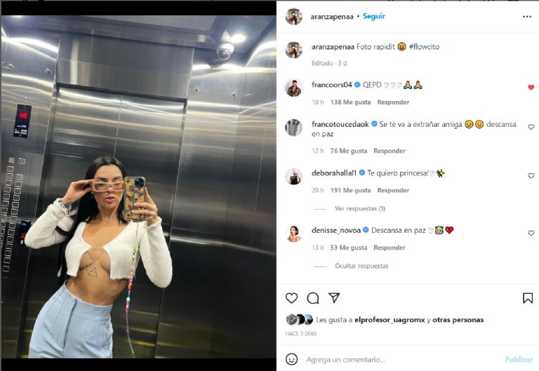Luego del fallecimiento de Aranza Peña, sus fans y compañeros de trabajo dejaron un mensaje en su última publicación en Instagram