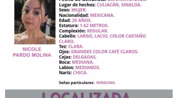 La Fiscalía General del Estado de Sinaloa confirmó este sábado la localización con vida de Nicole Pardo Molina, creadora de contenido conocida en redes sociales como Nicholette, quien había sido reportada como desaparecida desde el pasado 20 de enero en Culiacán.